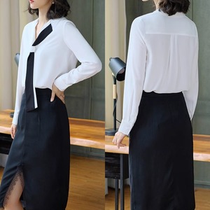 フロントのバイカラーリボンが目を惹く、洗練された一枚。