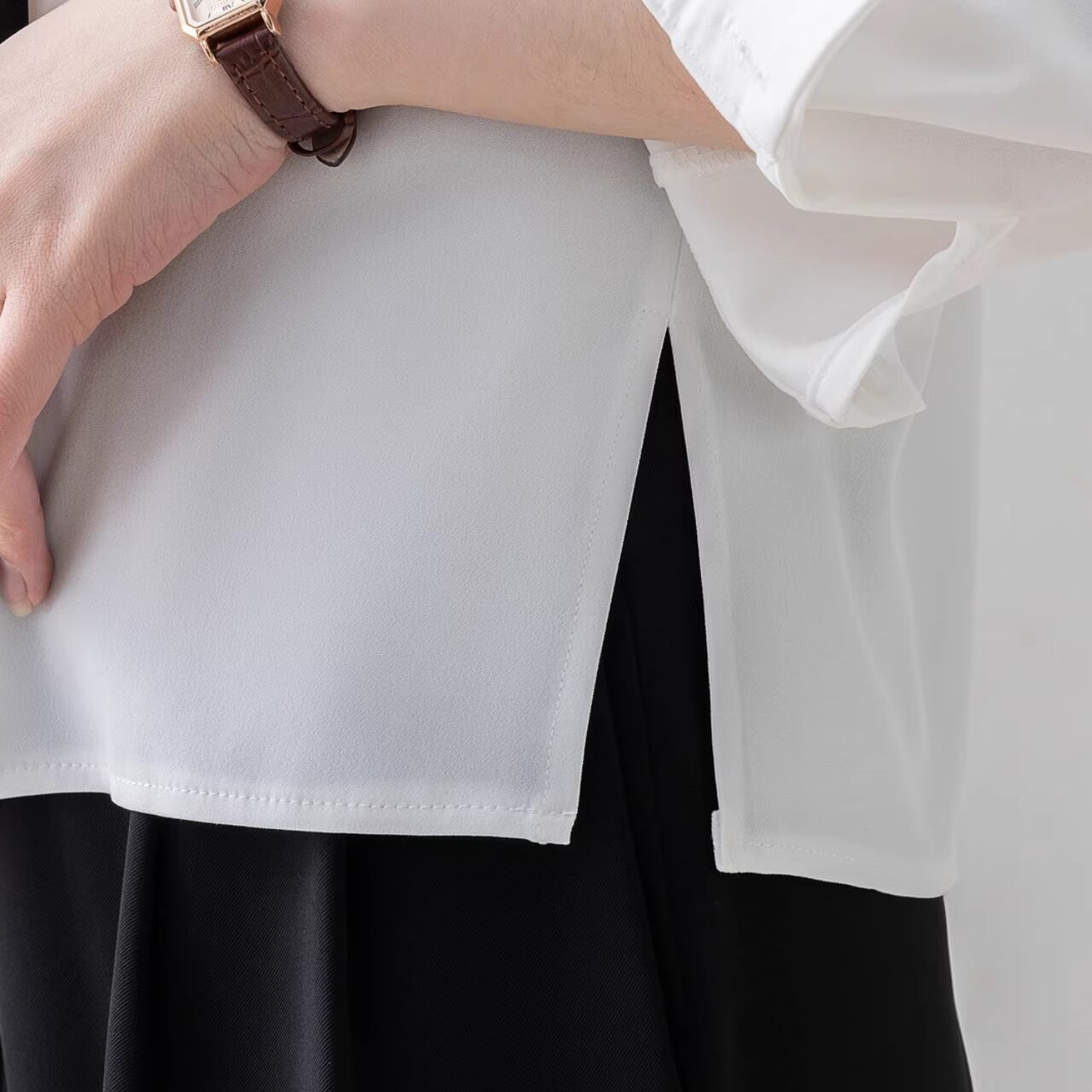 さりげない遊び心と上品さを兼ね備えた、モードスタイルにぴったりのブラウスです。