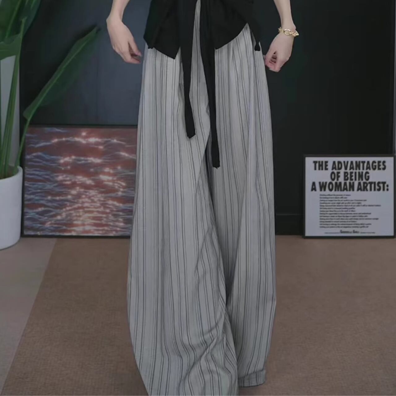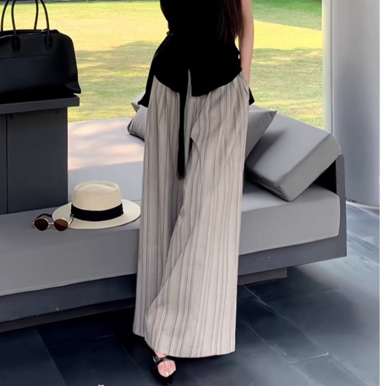 ゆったりシルエットが魅力のストライプパンツ。