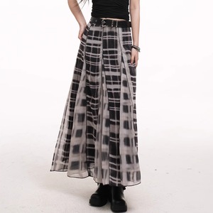アートのように配置されたチェック柄が印象的なフレアスカート。