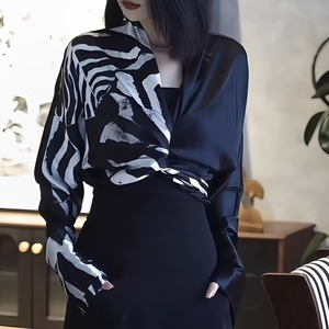 大胆なゼブラ柄とドレープが魅せる、視線を集めるモードトップス。