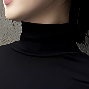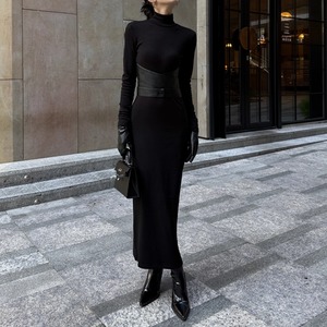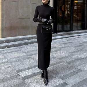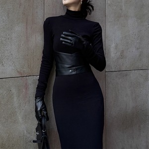 伸縮性のあるタイトなシルエットがボディラインを美しく演出し、タートルネックが知的でモードな印象を与えてくれます。