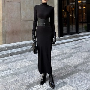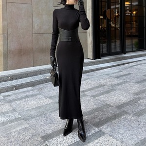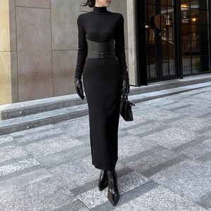 全身を引き締めるオールブラックで仕立てた、洗練のロングワンピース。