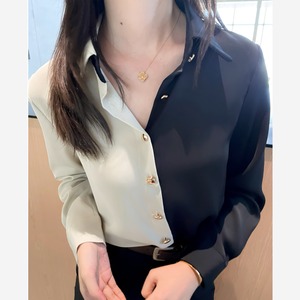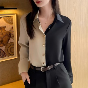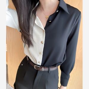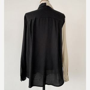 大胆な配色切り替えが目を惹く、バイカラーデザインのシャツ。