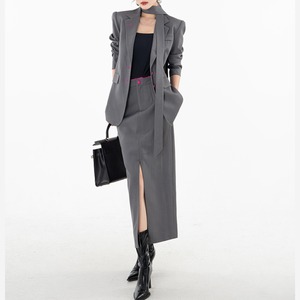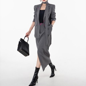 スリット入りのロングスカートで抜け感を演出しつつ、モードな印象もプラス。