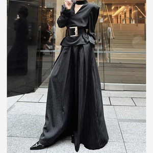 Vネックベルトセットアップパンツ H0263
