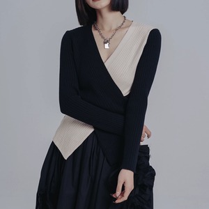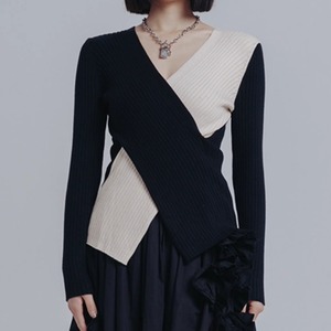バイカラーラップリブニット H0265