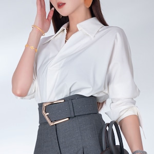 定番のホワイトシャツをアップデートした、洗練された一枚。