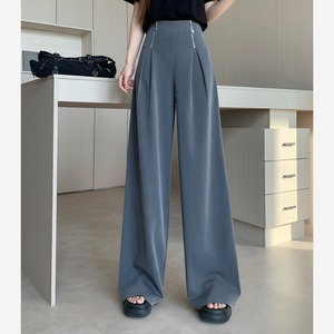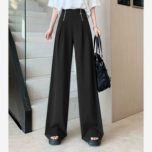 シンプルな中に個性を感じさせる、ジップデザインがアクセントのワイドパンツ。