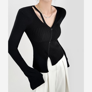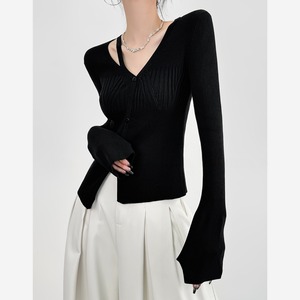 深めVネックとカットアウトディテールが目を惹くリブトップス。