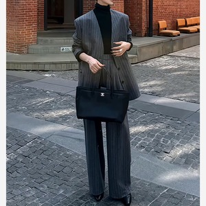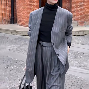 ノーカラーストライプスーツ H0273