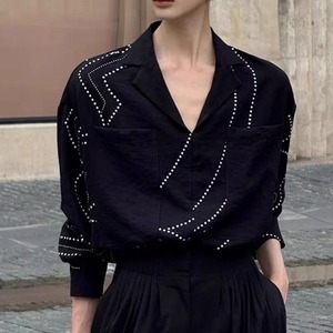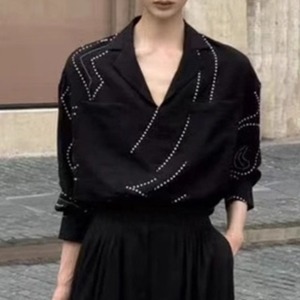 ランダムなドットで描かれるアートのようなラインが特徴のシャツ。