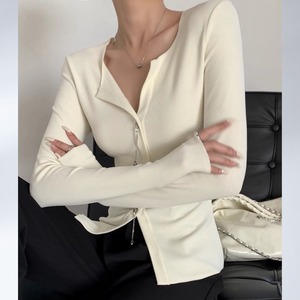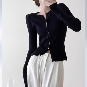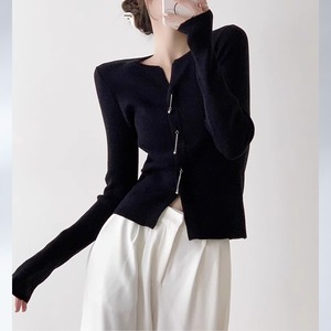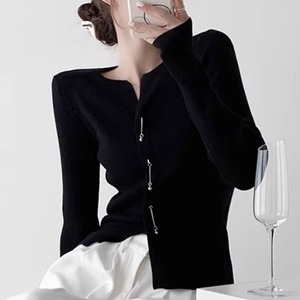 不規則に並ぶピンディテールが、さりげなく個性を主張するカーディガン。