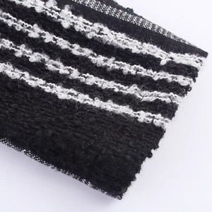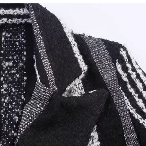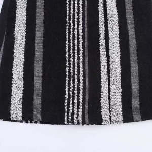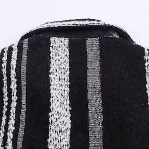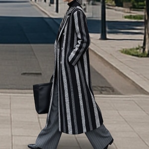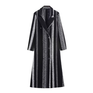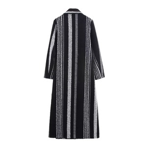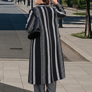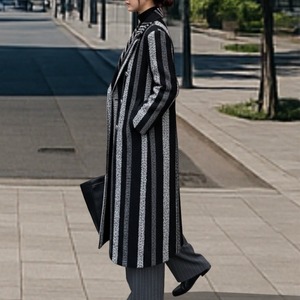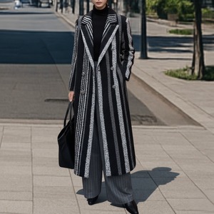 直線的なストライプが美しく構成された、アーティキュレートロングコート。