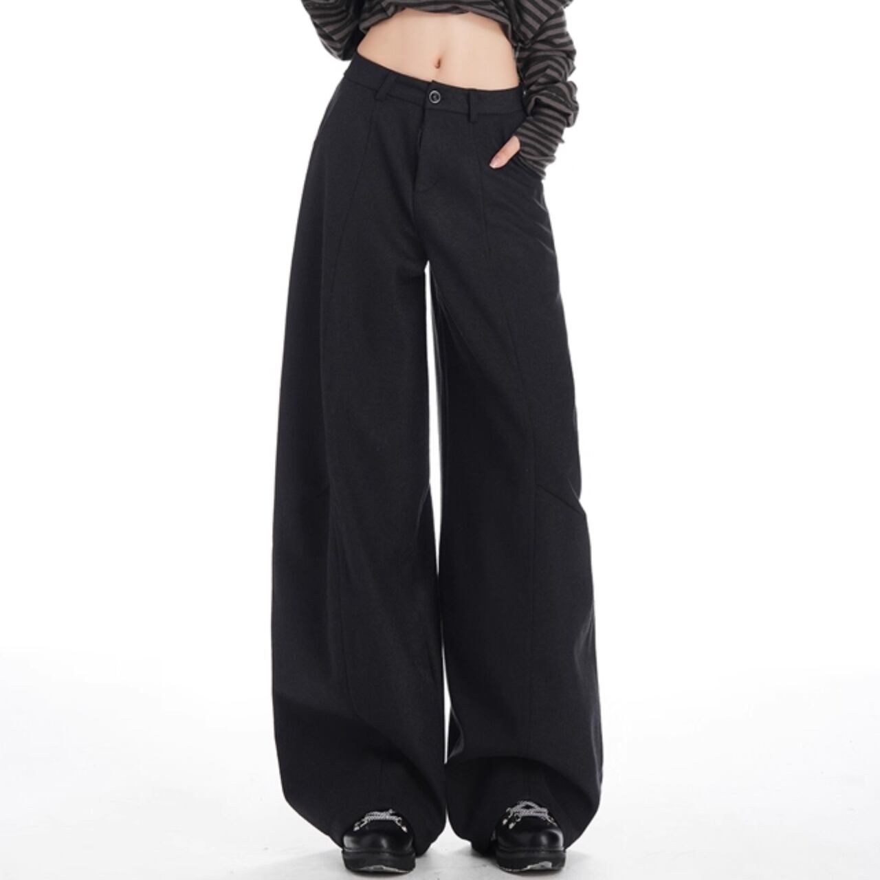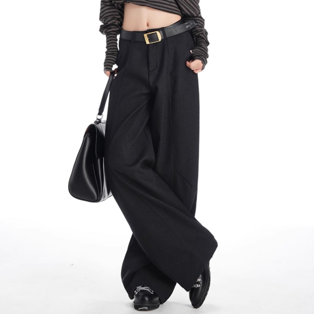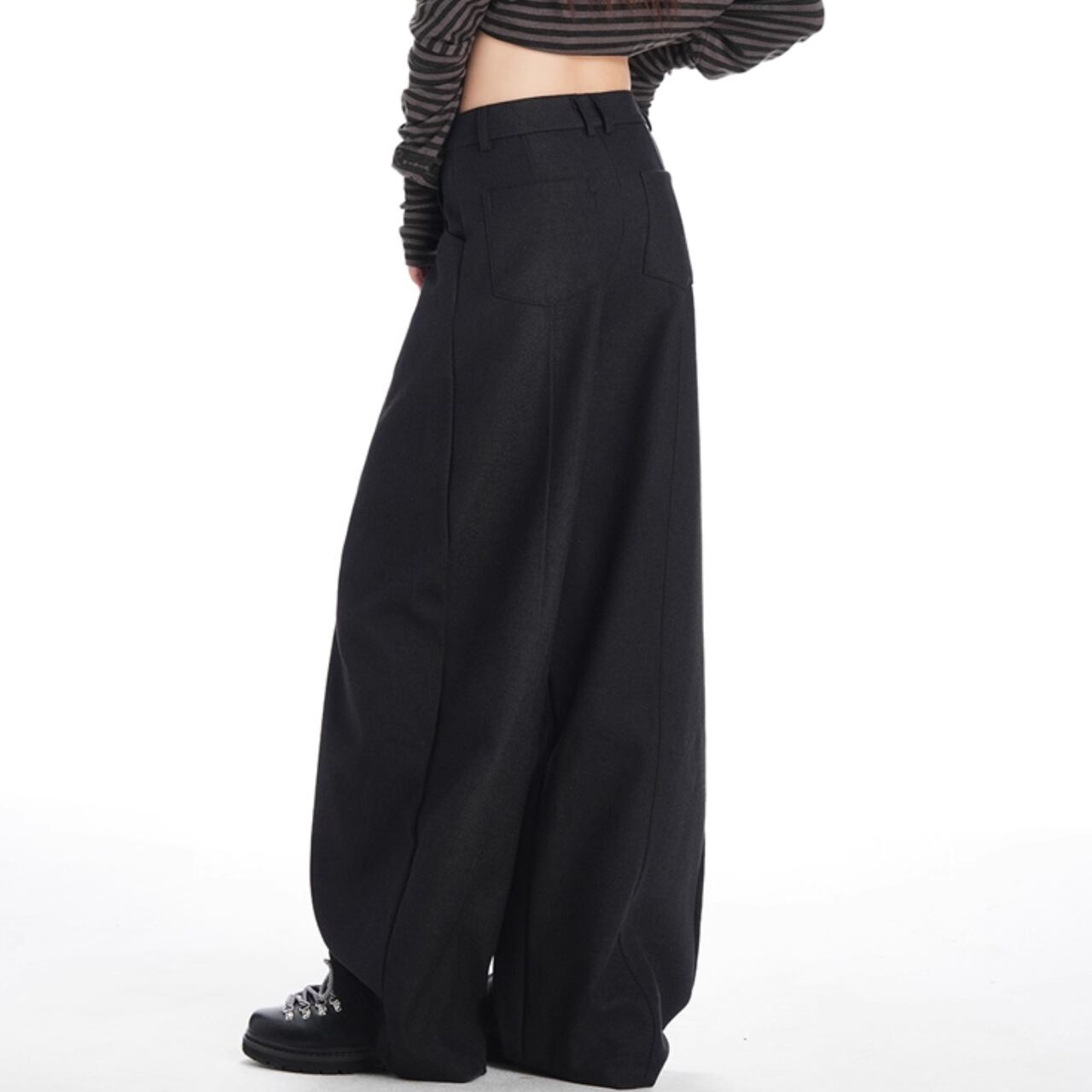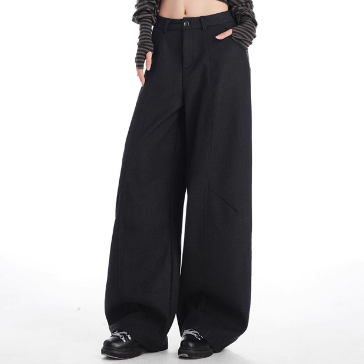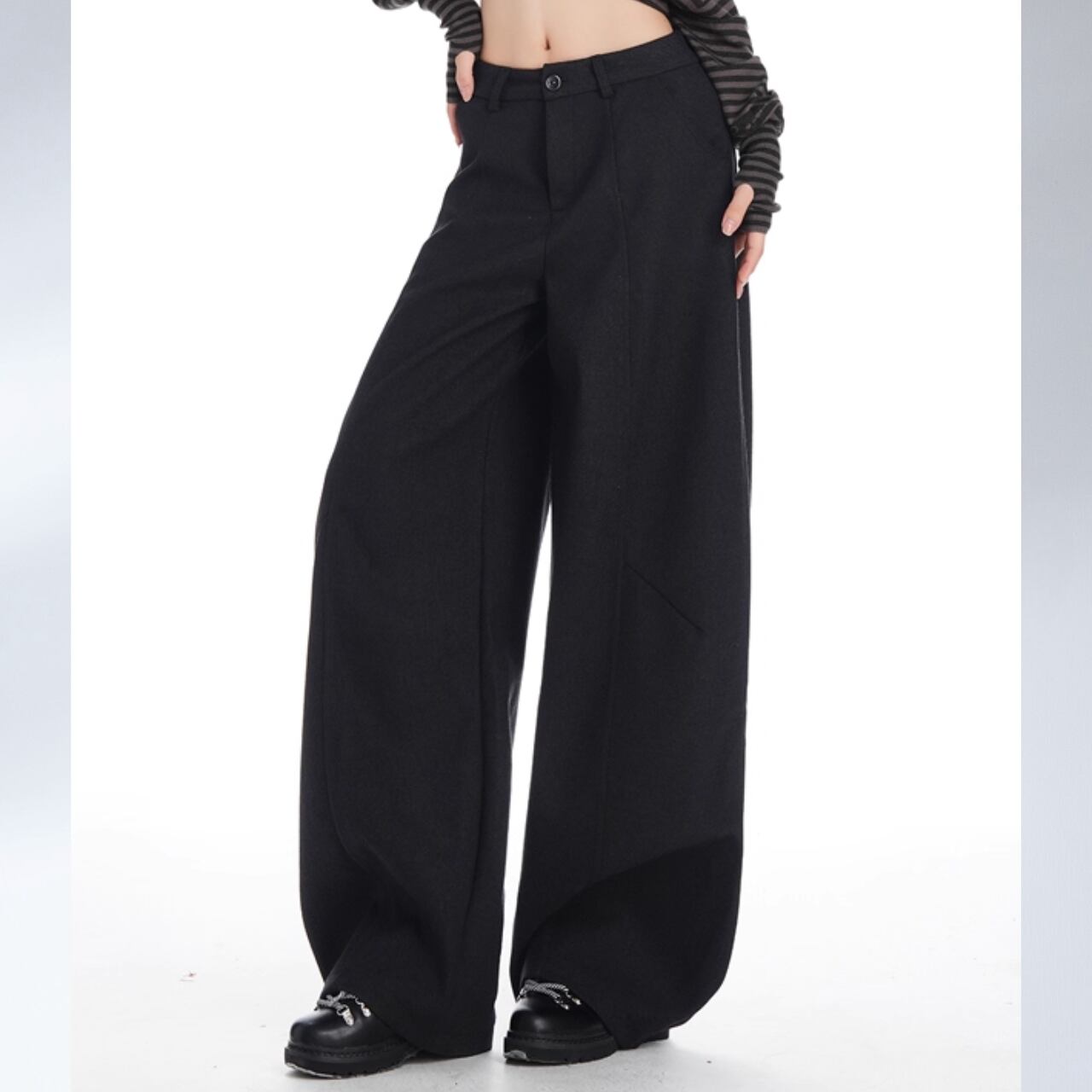 立体感と流れを同時に纏う、グラビティワイドパンツ。