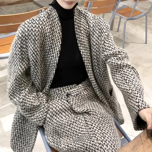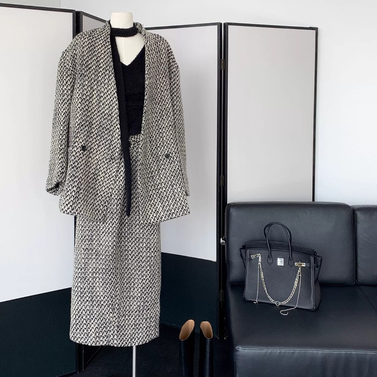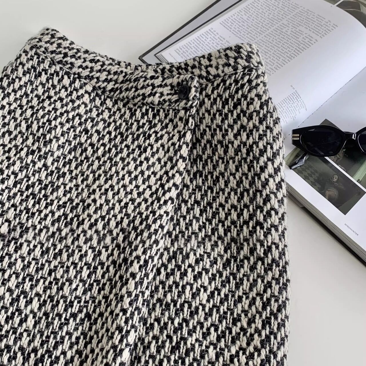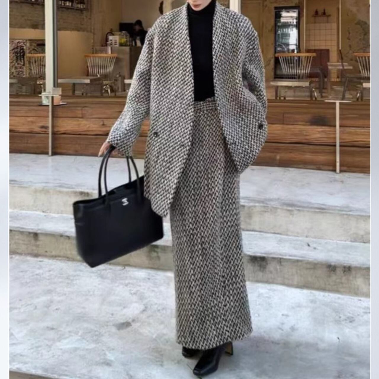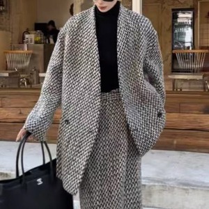 ツイードの質感に、構築されたシルエットを重ねたグラニュールツイードセットアップ。