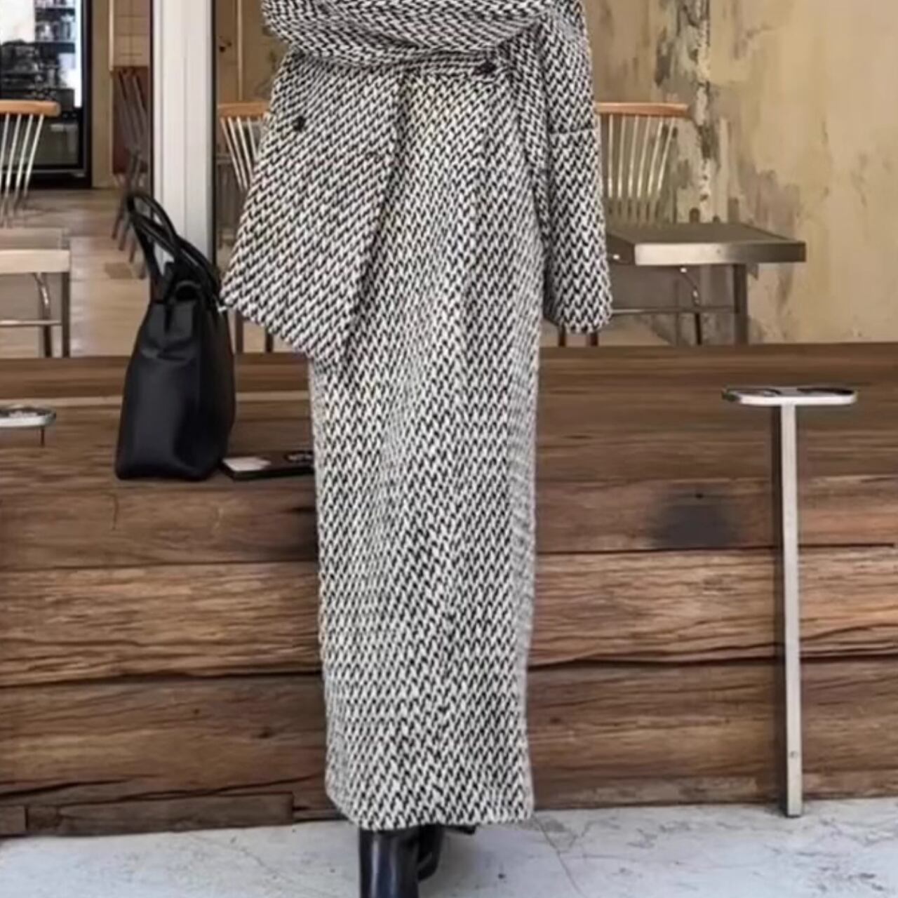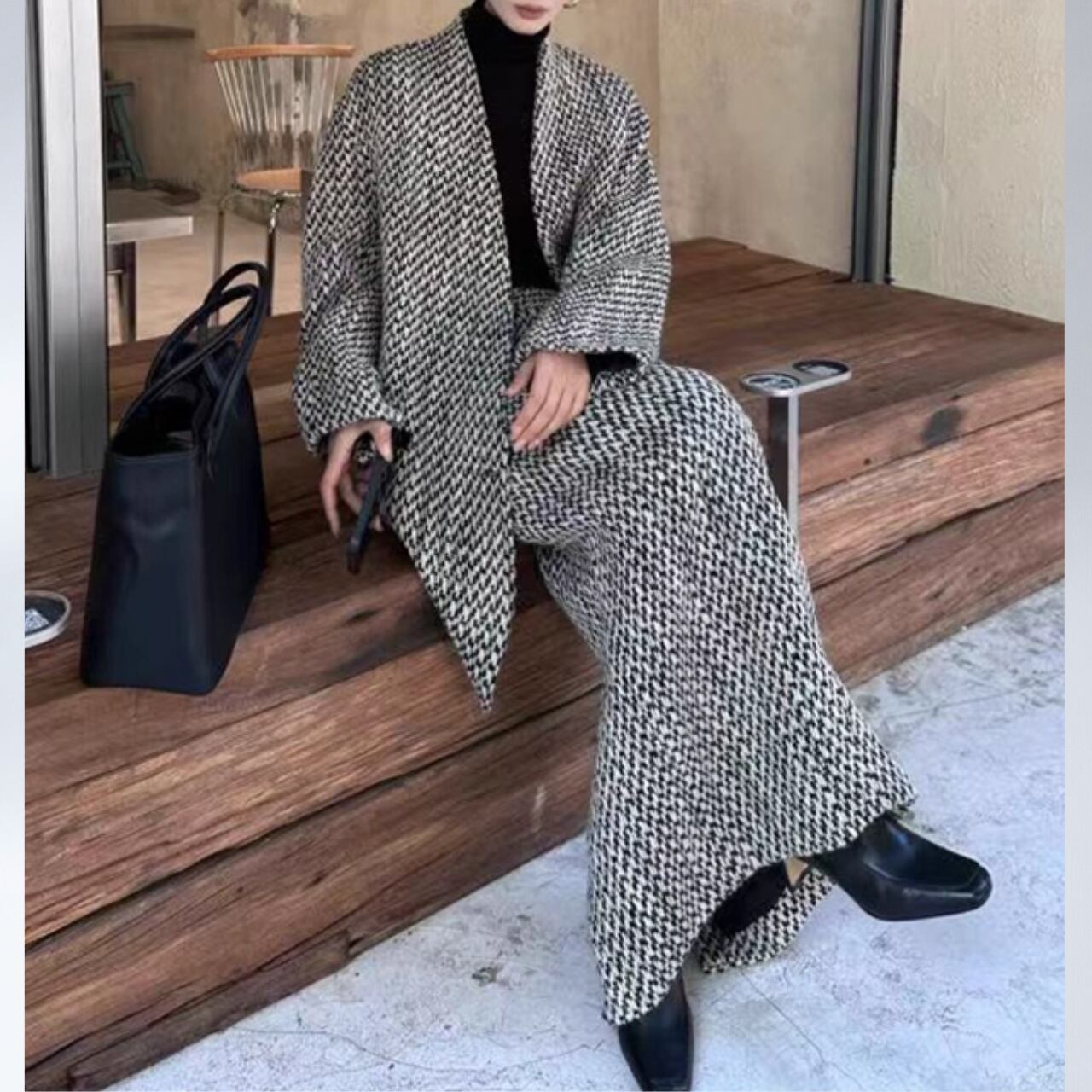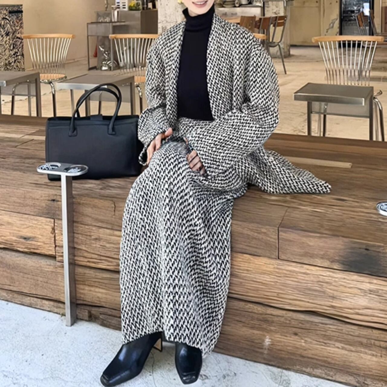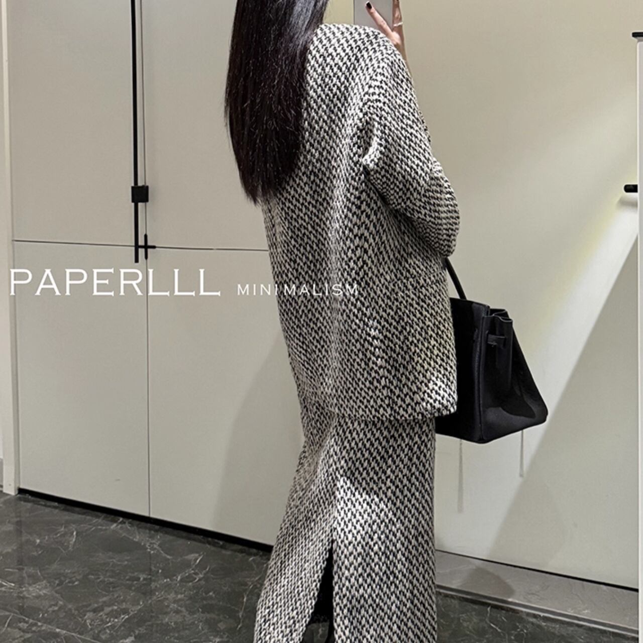 ツイードの質感に、構築されたシルエットを重ねたグラニュールツイードセットアップ。