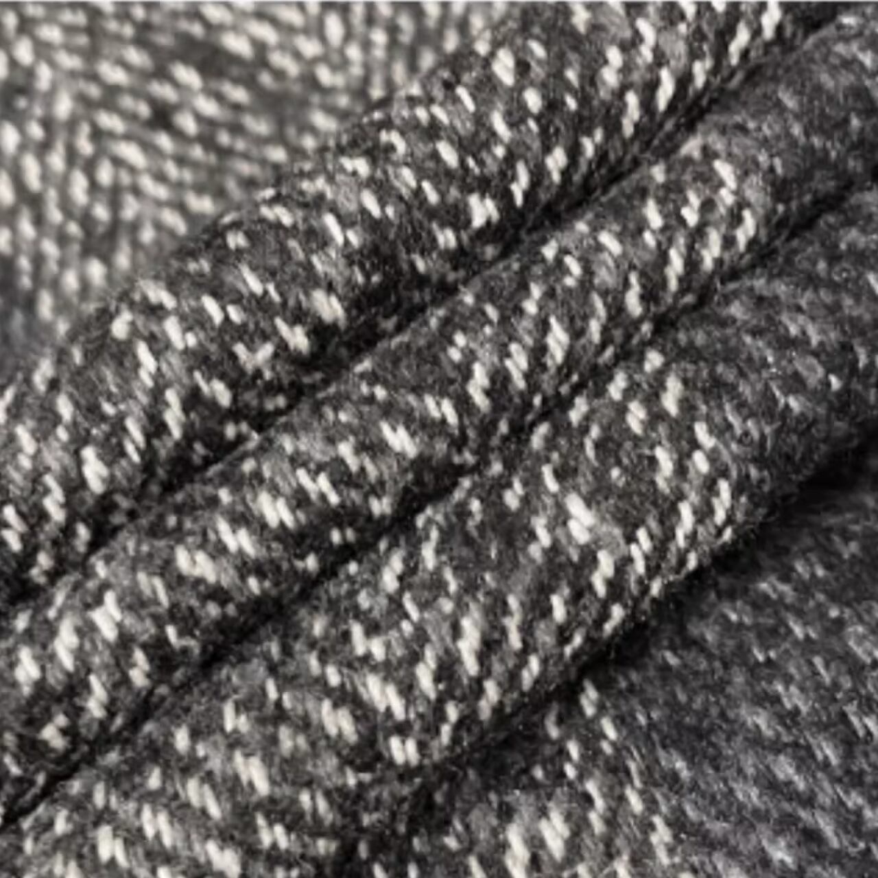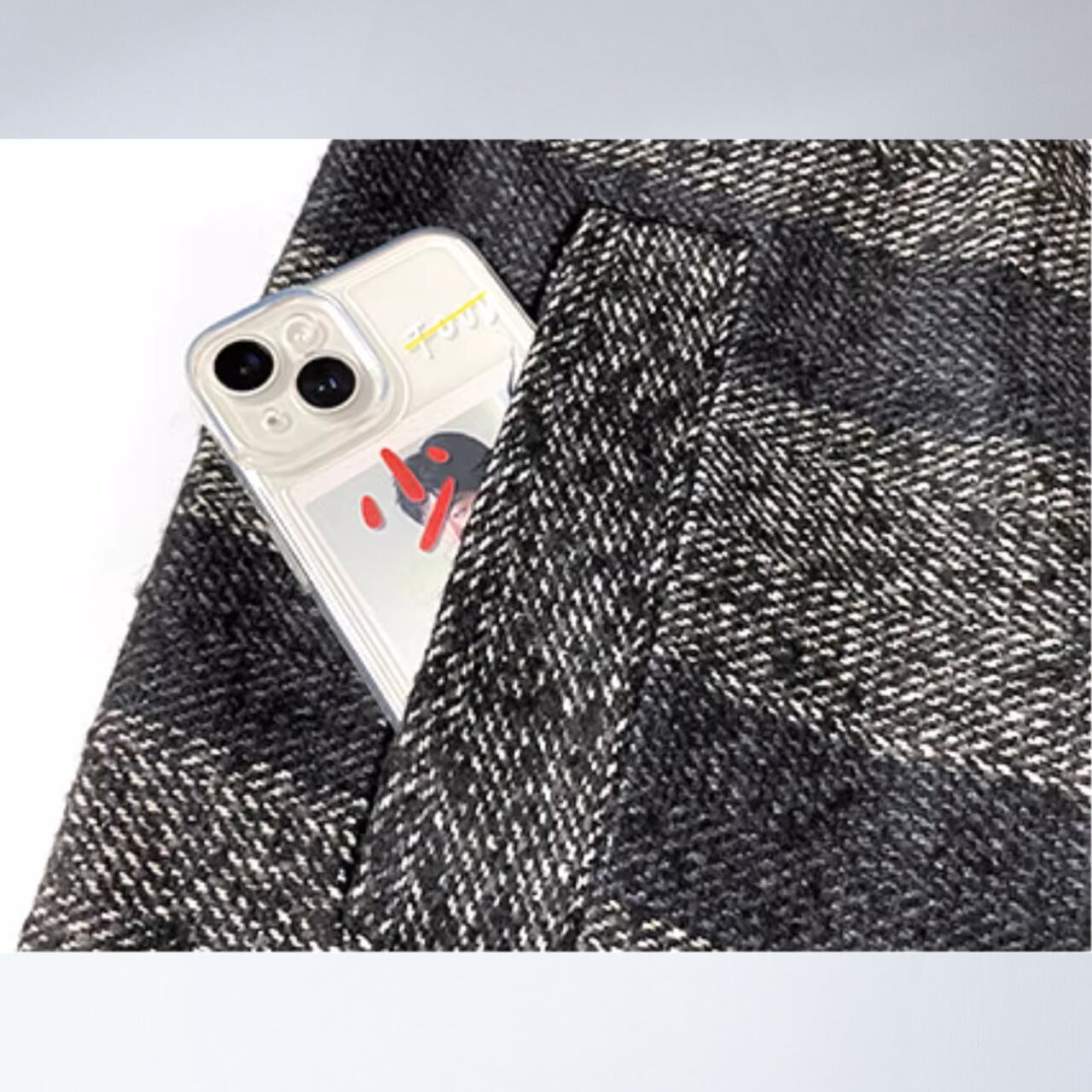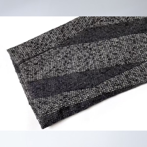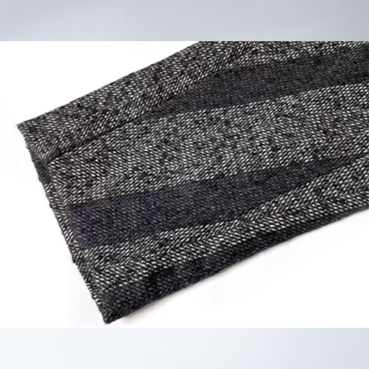 まるでノイズのような柄の揺らぎと、構築的なシルエットが印象に残る一着。