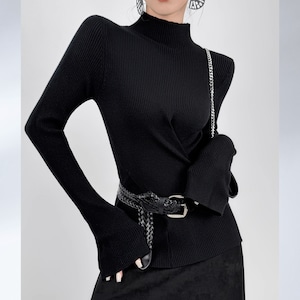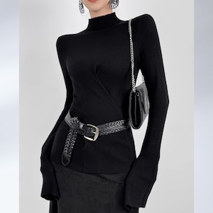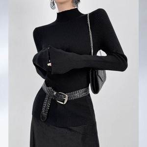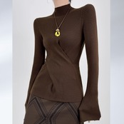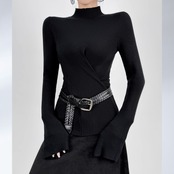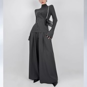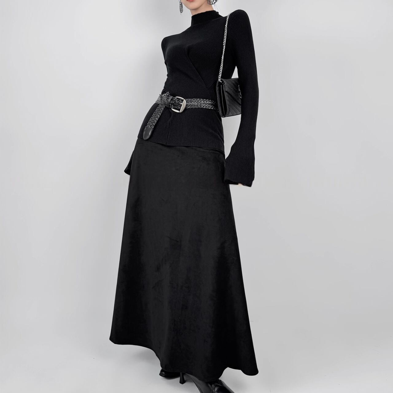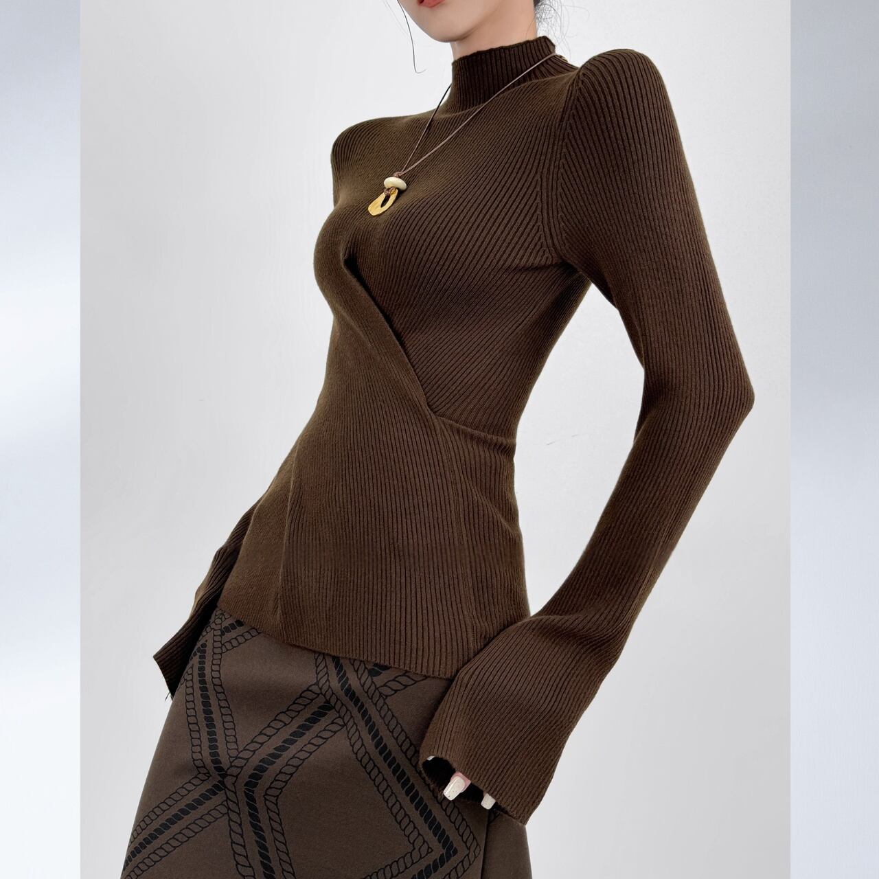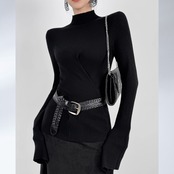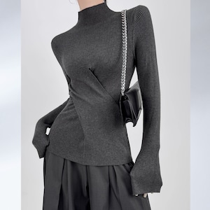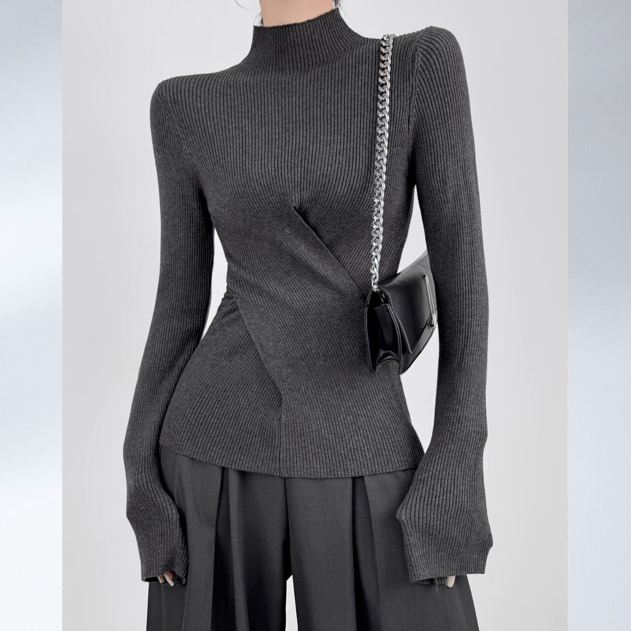 アシンメトリーなシルエットとリブの表情が、ミニマルの中に静かなインパクトを宿すモードな一枚。