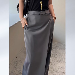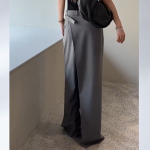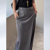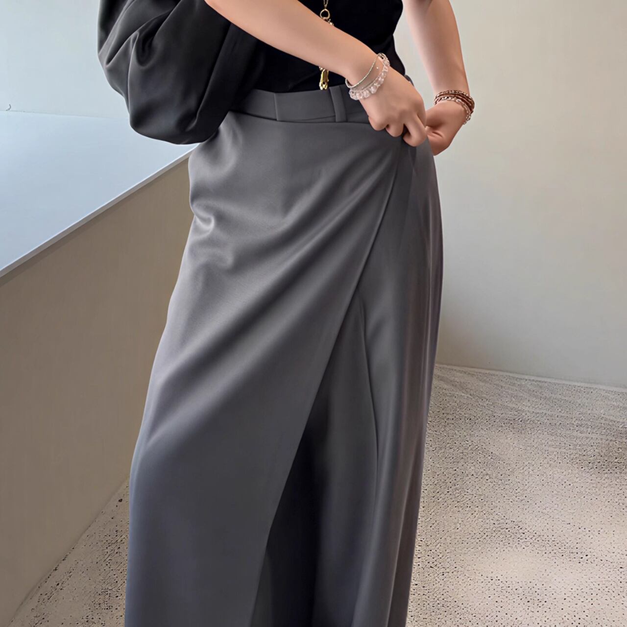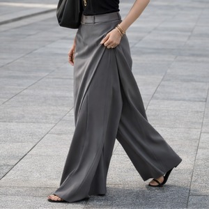 一見スカートのような優雅なドレープが魅力のワイドパンツ。