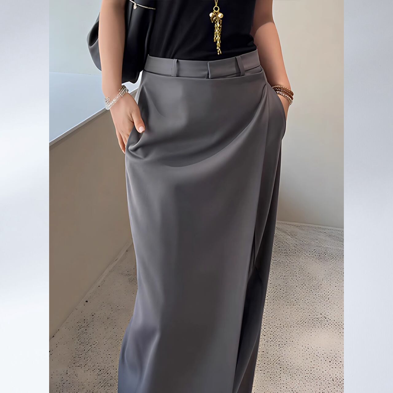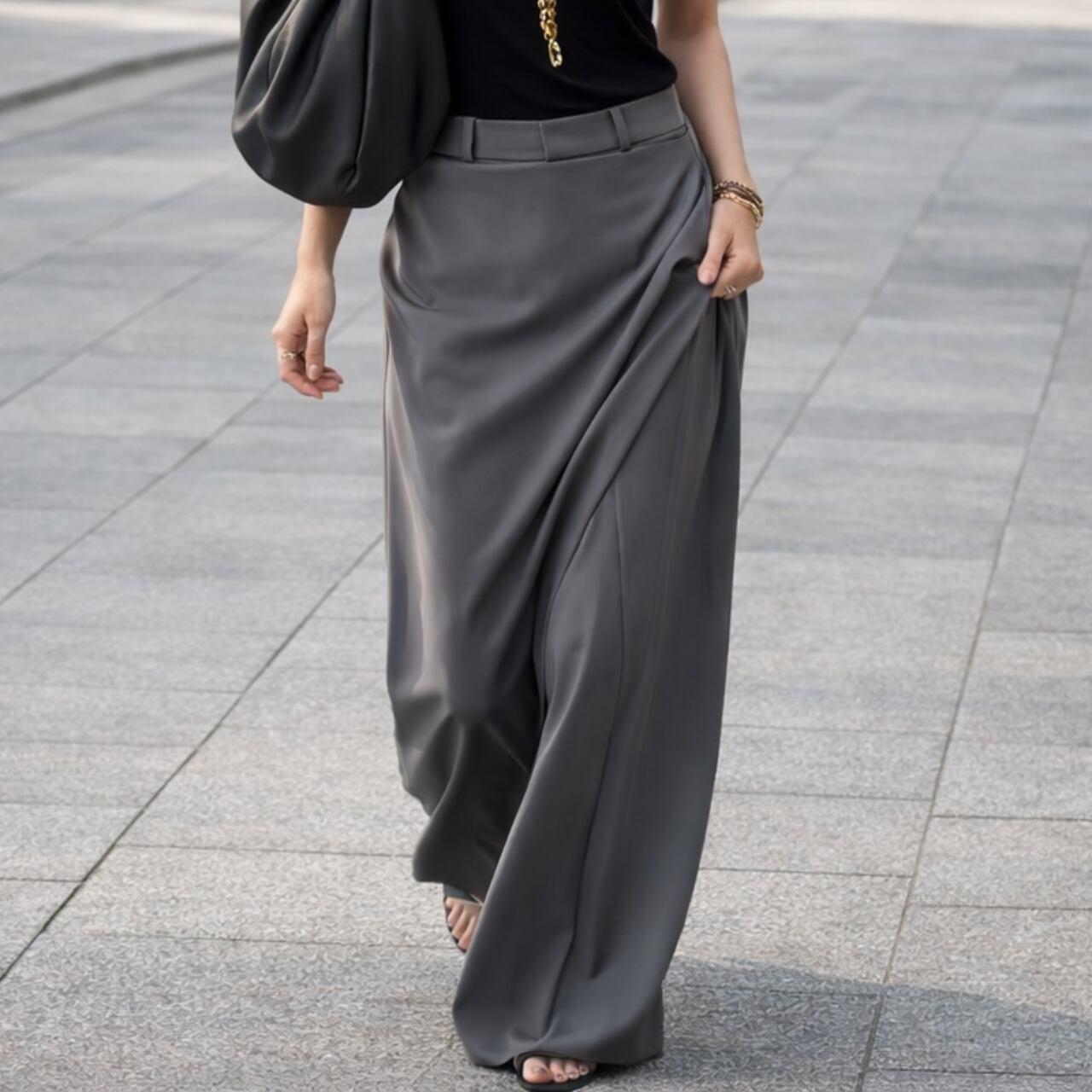 計算されたシルエットで、動くたびに美しく揺れ、モードなスタイルを引き立てます。