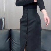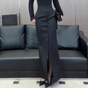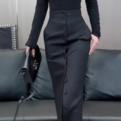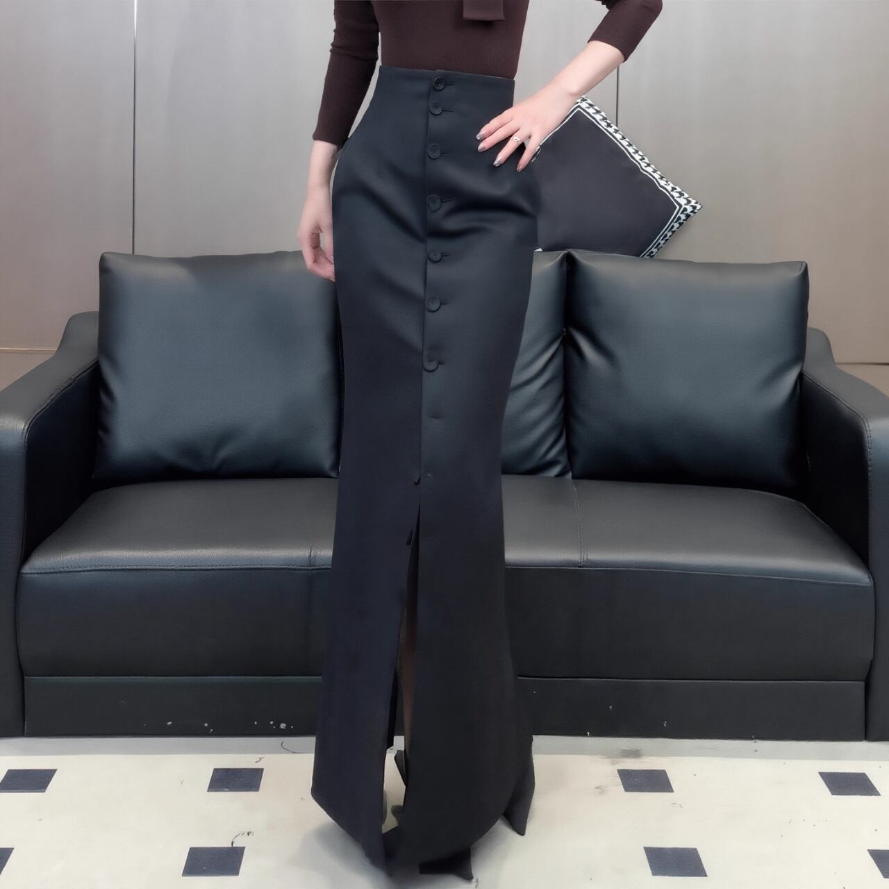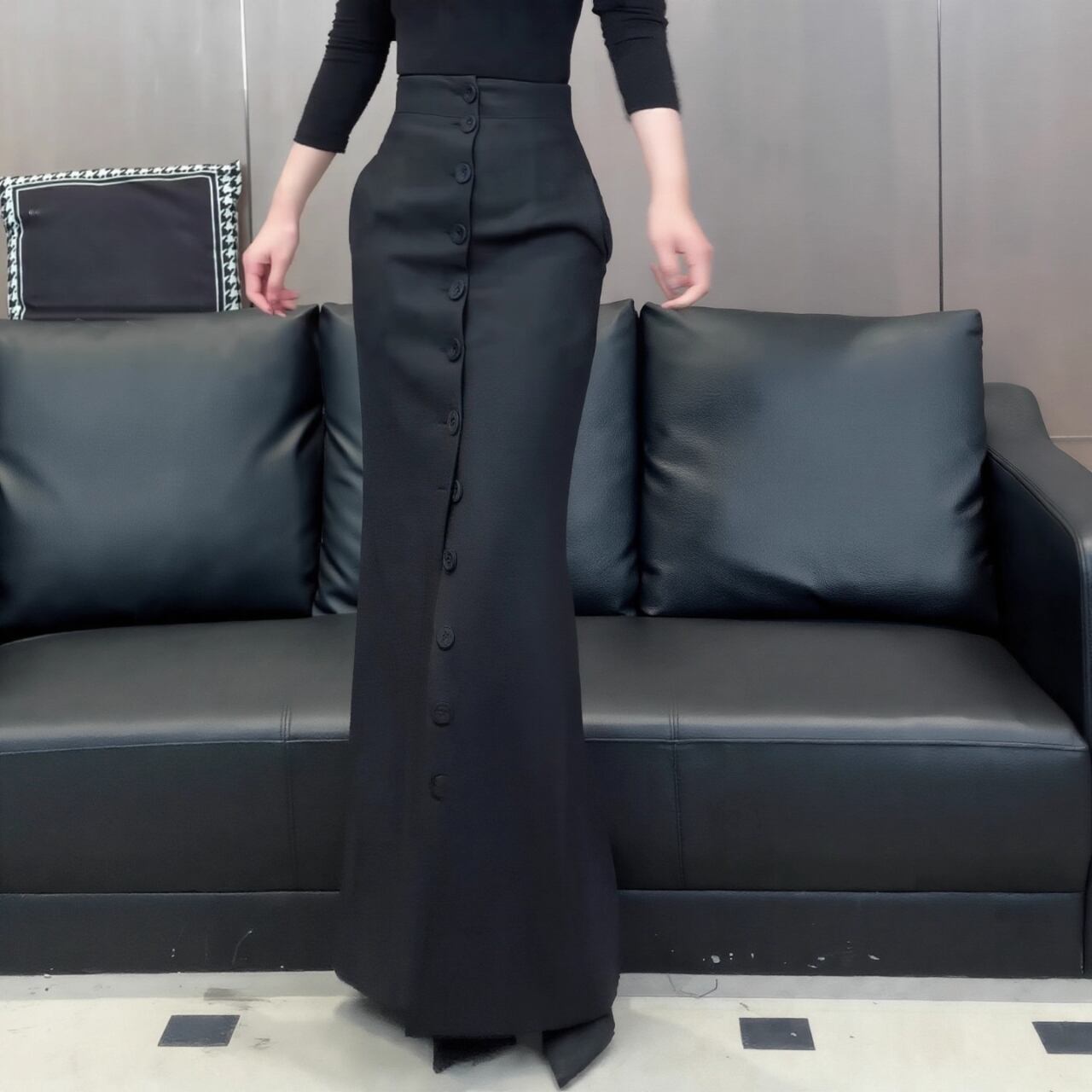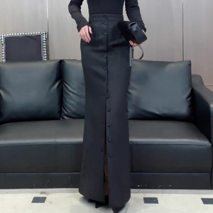 縦に並んだボタンがアクセントになった、スマートなマキシスカート。