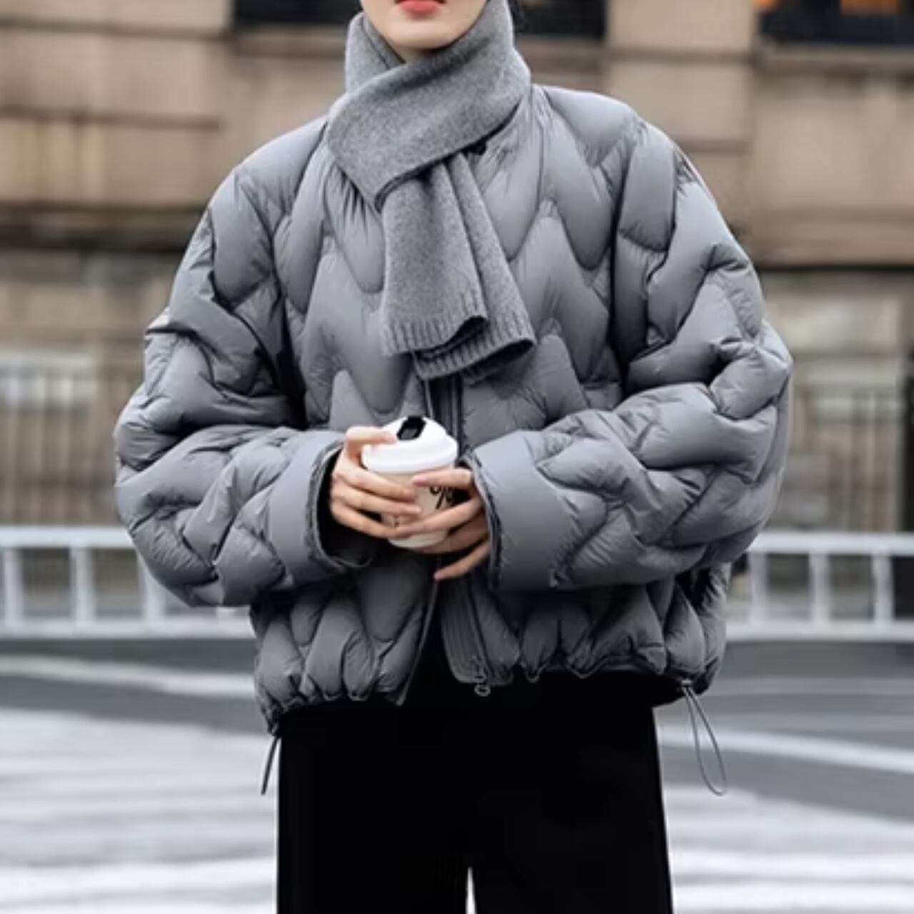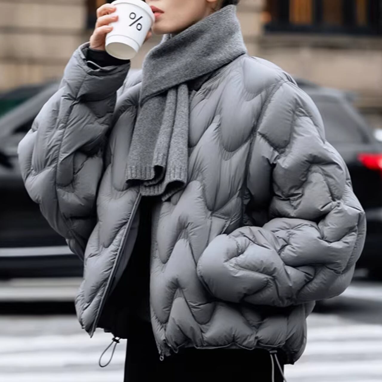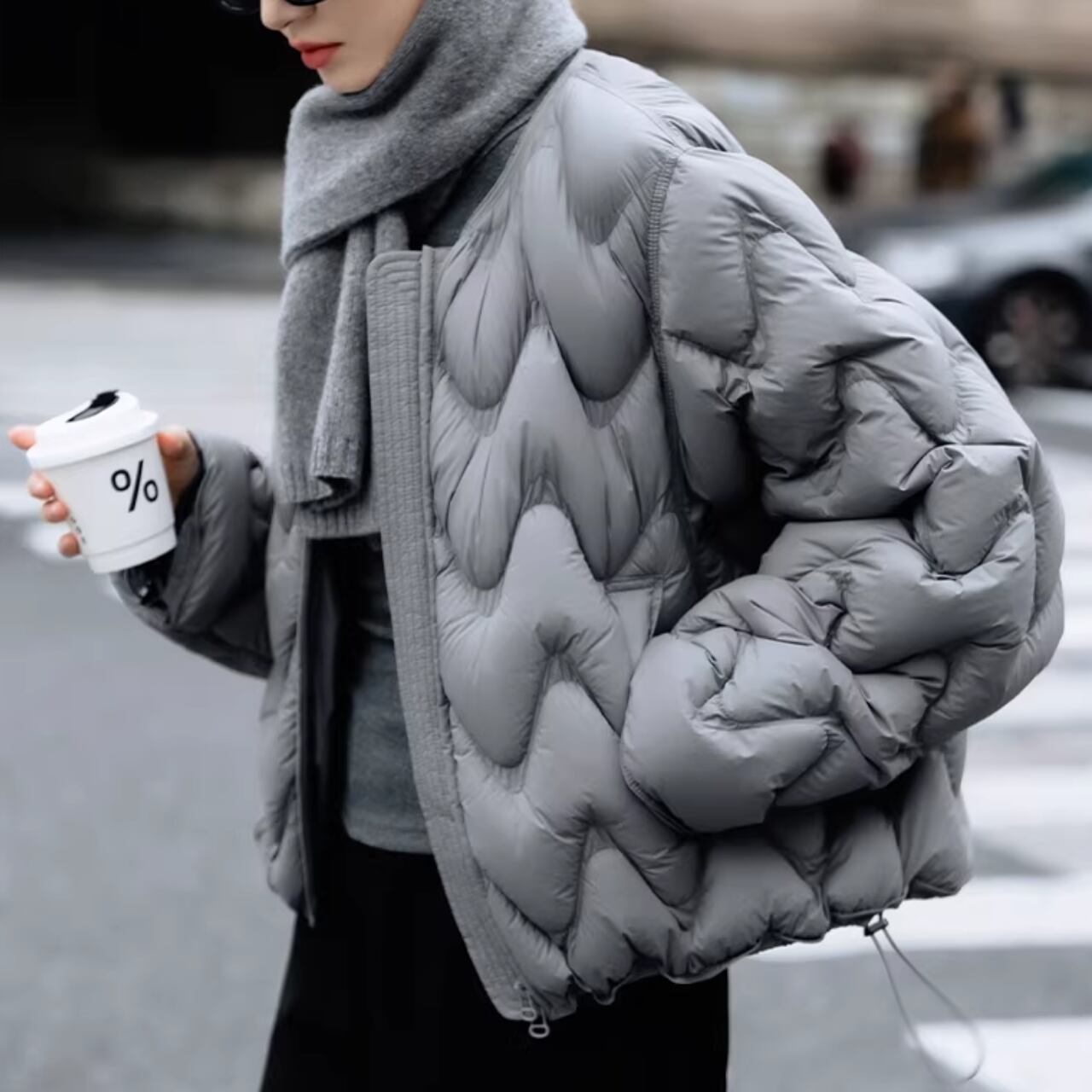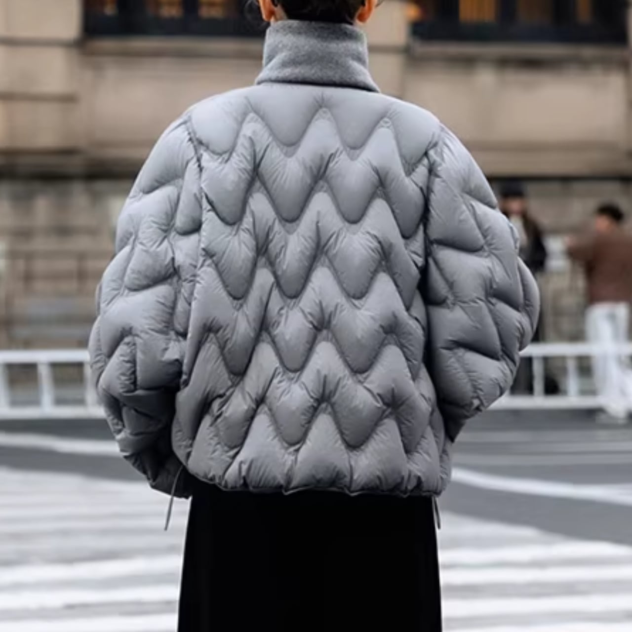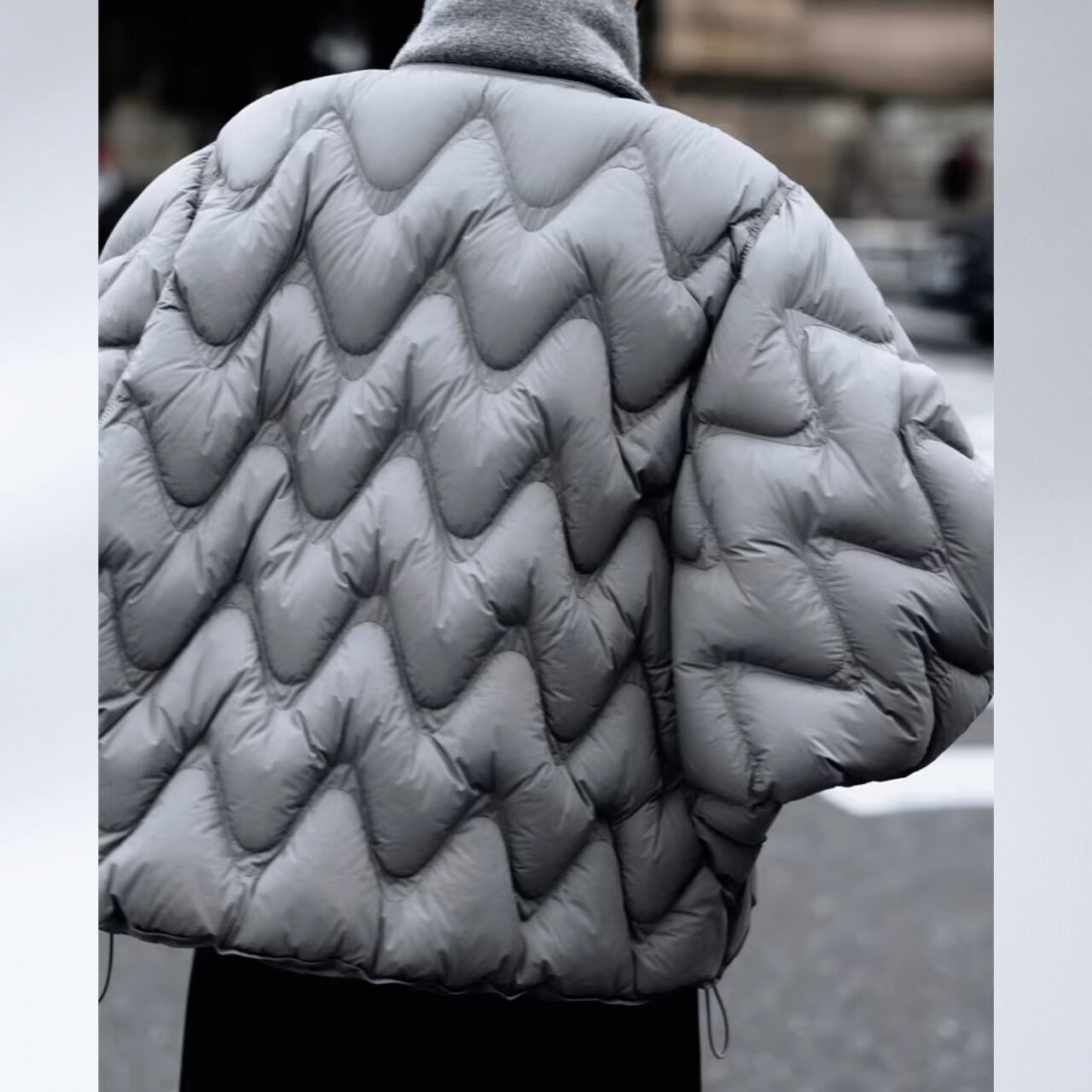 波打つようなキルティングデザインと丸みのあるシルエットが特徴のブルゾン。
