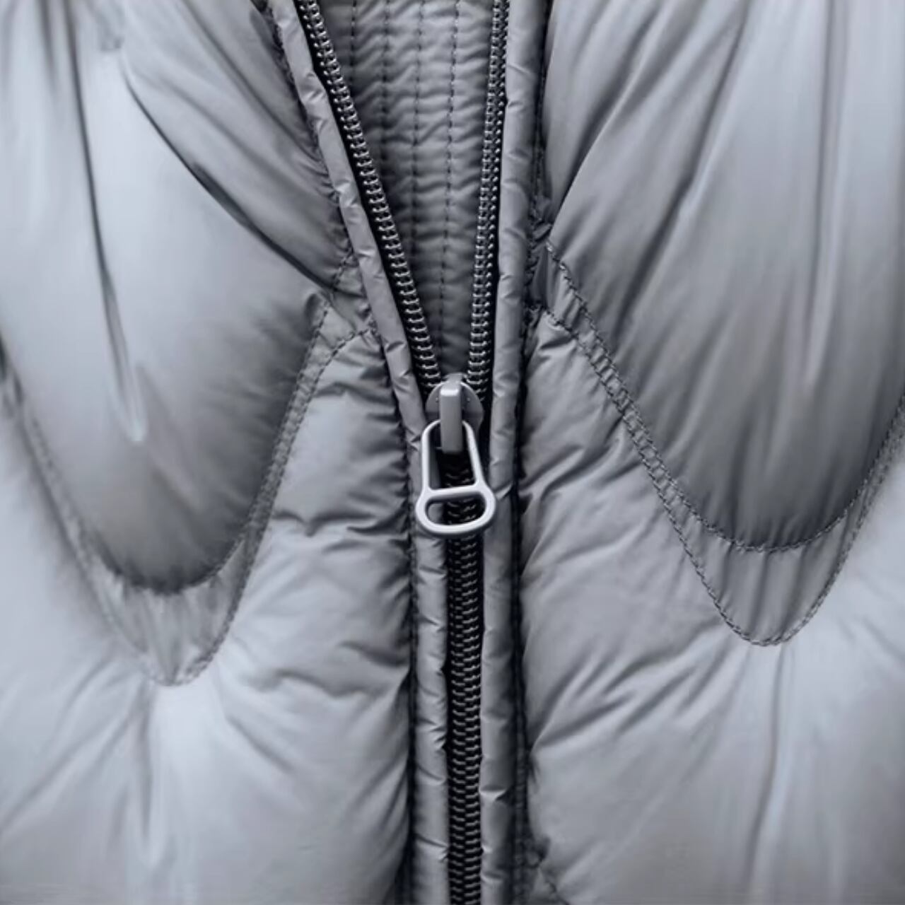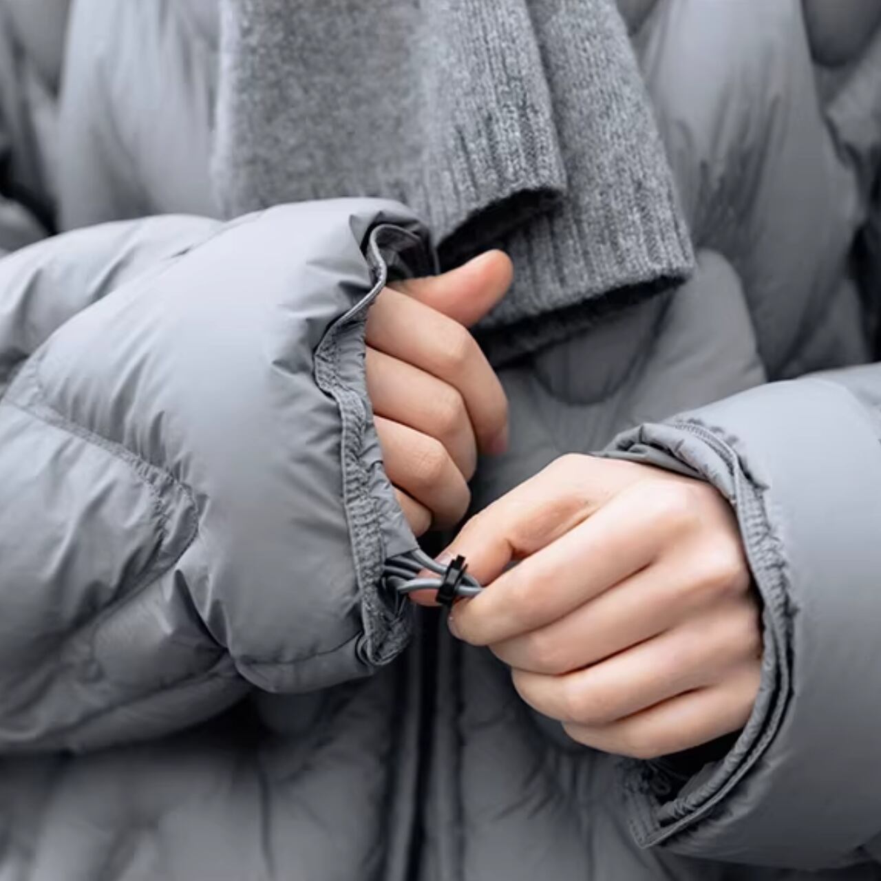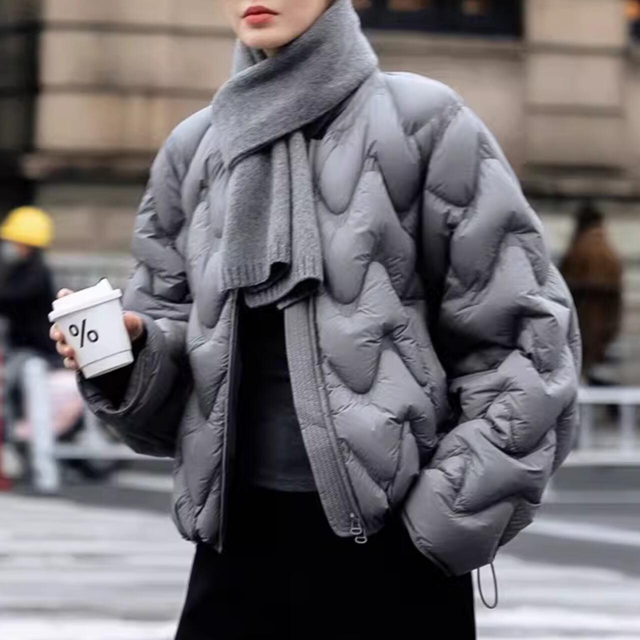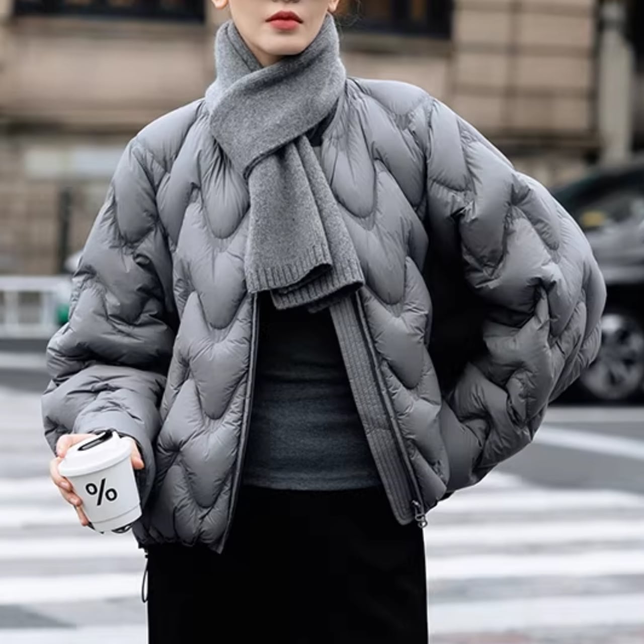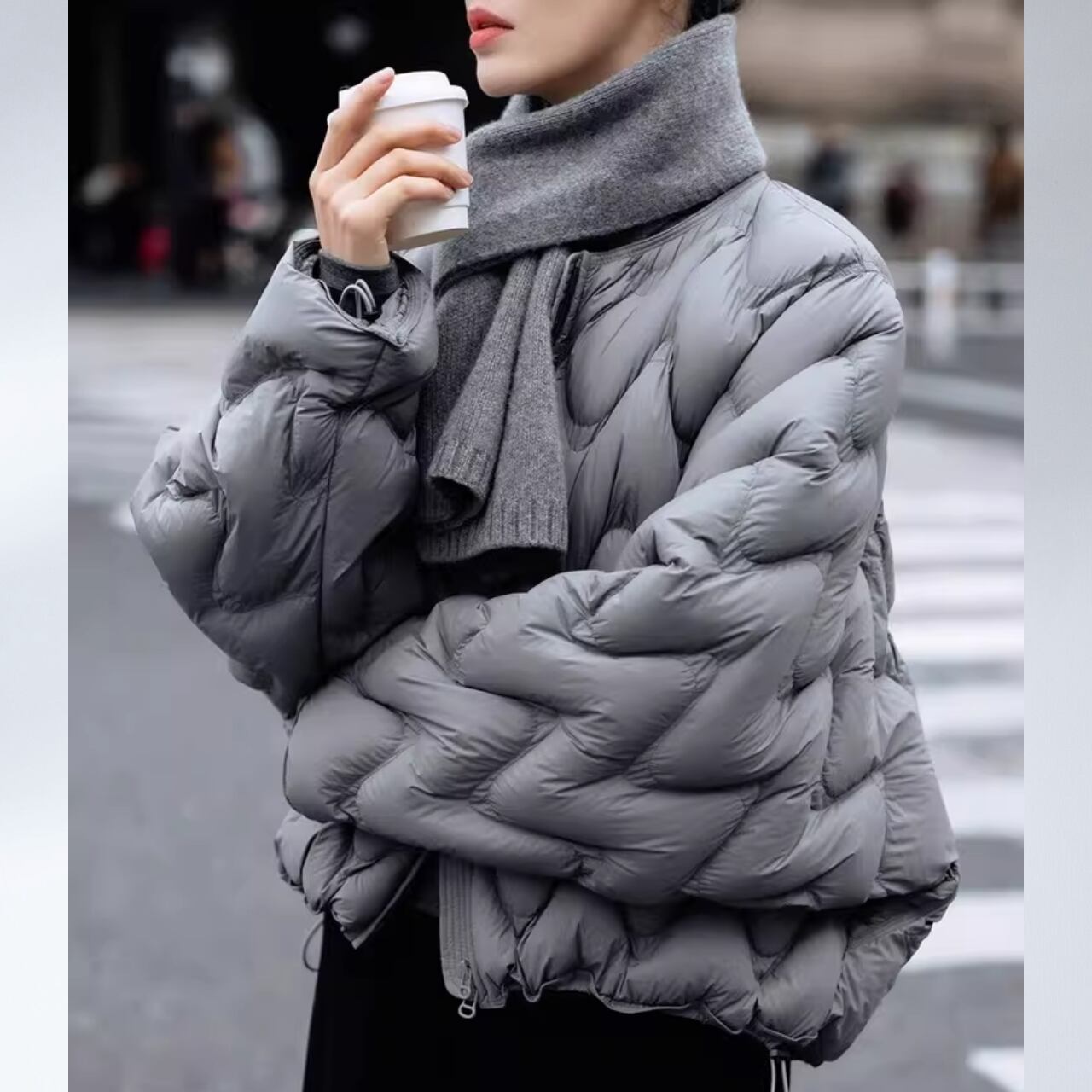 波打つようなキルティングデザインと丸みのあるシルエットが特徴のブルゾン。