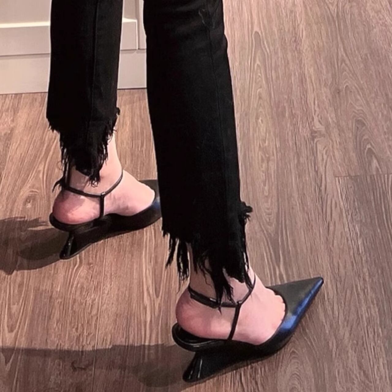 足首にジャストフィットするストラップデザインが女性らしさを引き立て、