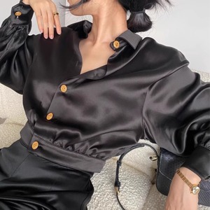 ランタンスリーブサテンシャツ H0047