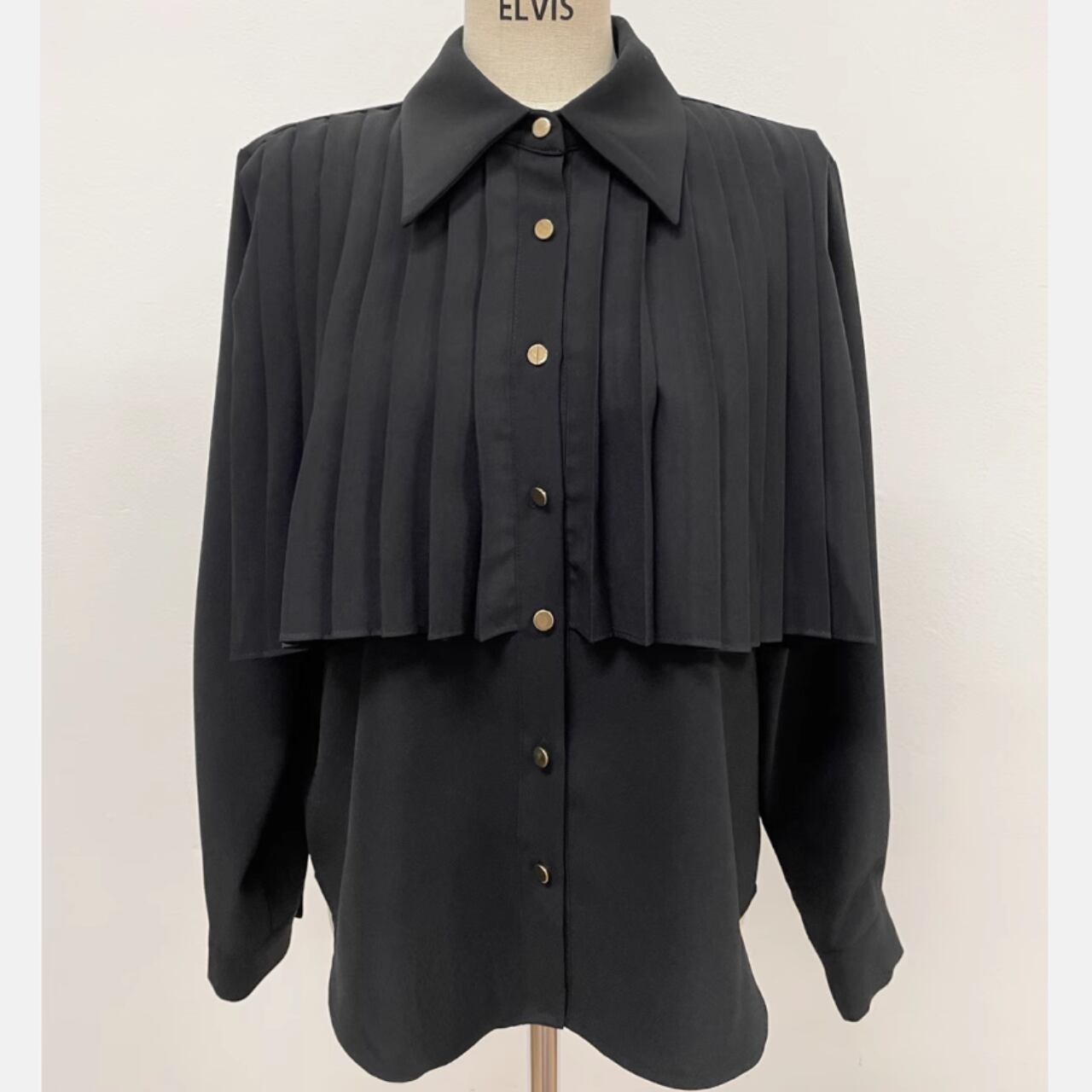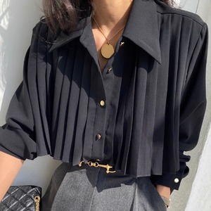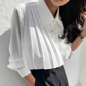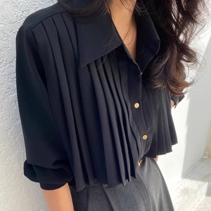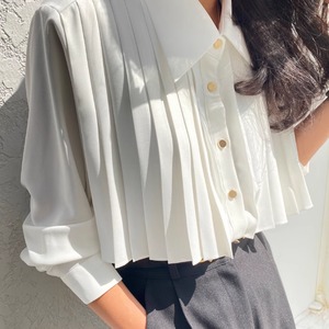 プリーツのデザインが施されたシャツは、シンプルながらも個性的な印象を与えてくれます。大人の女性にぴったりのアイテムです。