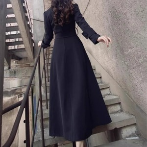 シルエットはすっきりとしたウエストマークで女性らしさを引き立てます。