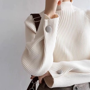 シンプルながらも、袖のボタンデザインがアクセントになり、おしゃれ感を演出します。