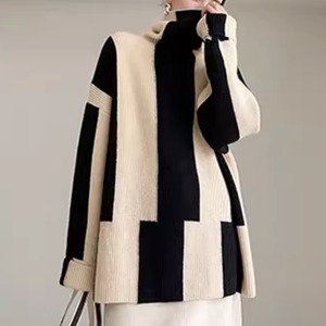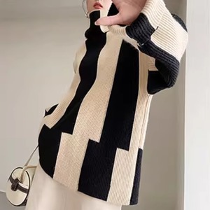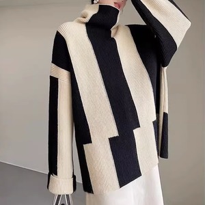ハイネックモノクロムニットトップス H0112