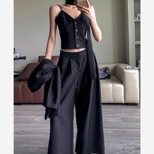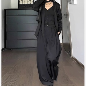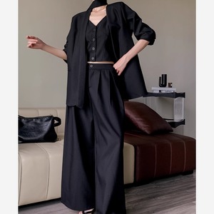 スタイリッシュで洗練されたブラックジャケットスリーピーススーツ。