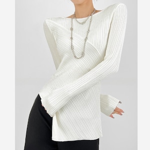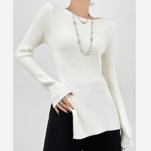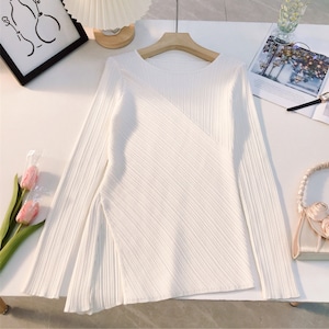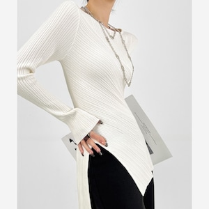 アシンメトリーヘムリブトップス H0138
