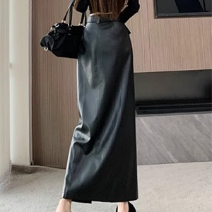 ジップディテールがクールな印象を考えるブラックロングスカート。