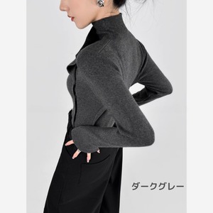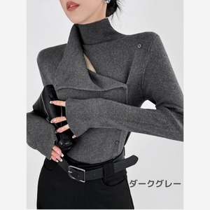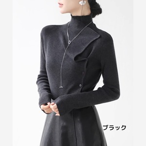 ハイネックとボタンディテールで、モード感たっぷりのスタイルを実現します。